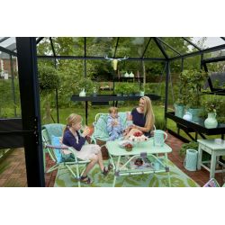 De tuin is een heerlijke plek om je terug te trekken en te genieten van de natuur en de rust. Ook als het weer buiten wat slechter is, zit u in dit prieel écht op uw gemak. Het Oase prieel combineert graag het praktische met ontspanning. Naast een heerlijke loungeplek is er voldoende ruimte voor verschillende pot- en kuipplanten en het aanbrengen van optioneel verkrijgbare zwart gecoate aluminium kweektafel en kweekgoot.