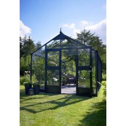 Voor het plaatsen van veiligheidsglas wordt gebruik gemaakt van kunststof beglazingsstrips in een antracietgrijze kleur. Dankzij het verzonken dorpelprofiel en een enkele deelbare scharnierdeur is de toegang tot de kas optimaal. De deur is met slot afsluitbaar. Voor een goede beluchting is de kas voorzien van meerdere dakramen in enkele en/of dubbele uitvoering. Het vrijhouden van de dakgoot van bijvoorbeeld blad is nog eenvoudiger dankzij de scharnierende dakgootafsluiting. Deze gepatenteerde constructie is optimaal gebruiksvriendelijk en onderstreept het design van de kas.